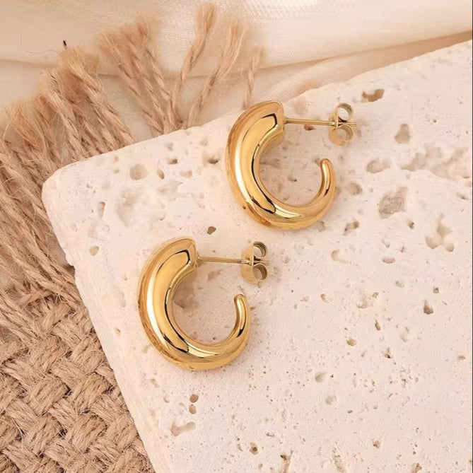 Playfully curved in a chic C-shape, these anti-tarnish earrings add a flirty twist to any outfit! Their sleek design hugs your earlobe with just the right amount of sparkle, while the special anti-tarnish finish means they'll stay brilliantly beautiful wear after wear. Curvy, classy, and carefree!