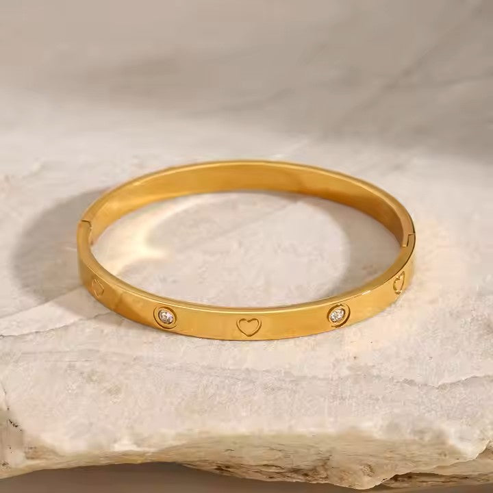 Add a sparkle to your style with this high-quality heart zirconia stainless steel bracelet! Crafted for trendsetters worldwide, its premium design shines bright and feels just right. Perfect for everyday glam or special moments, this best-selling bracelet brings a playful touch to any outfit. Wear your heart on your wrist and let the compliments roll in!