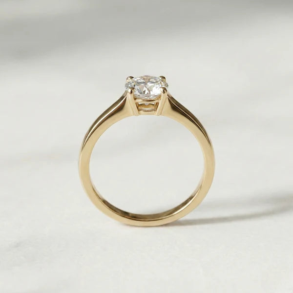 • Ring: Gold-tone stainless steel with high-clarity solitaire stone