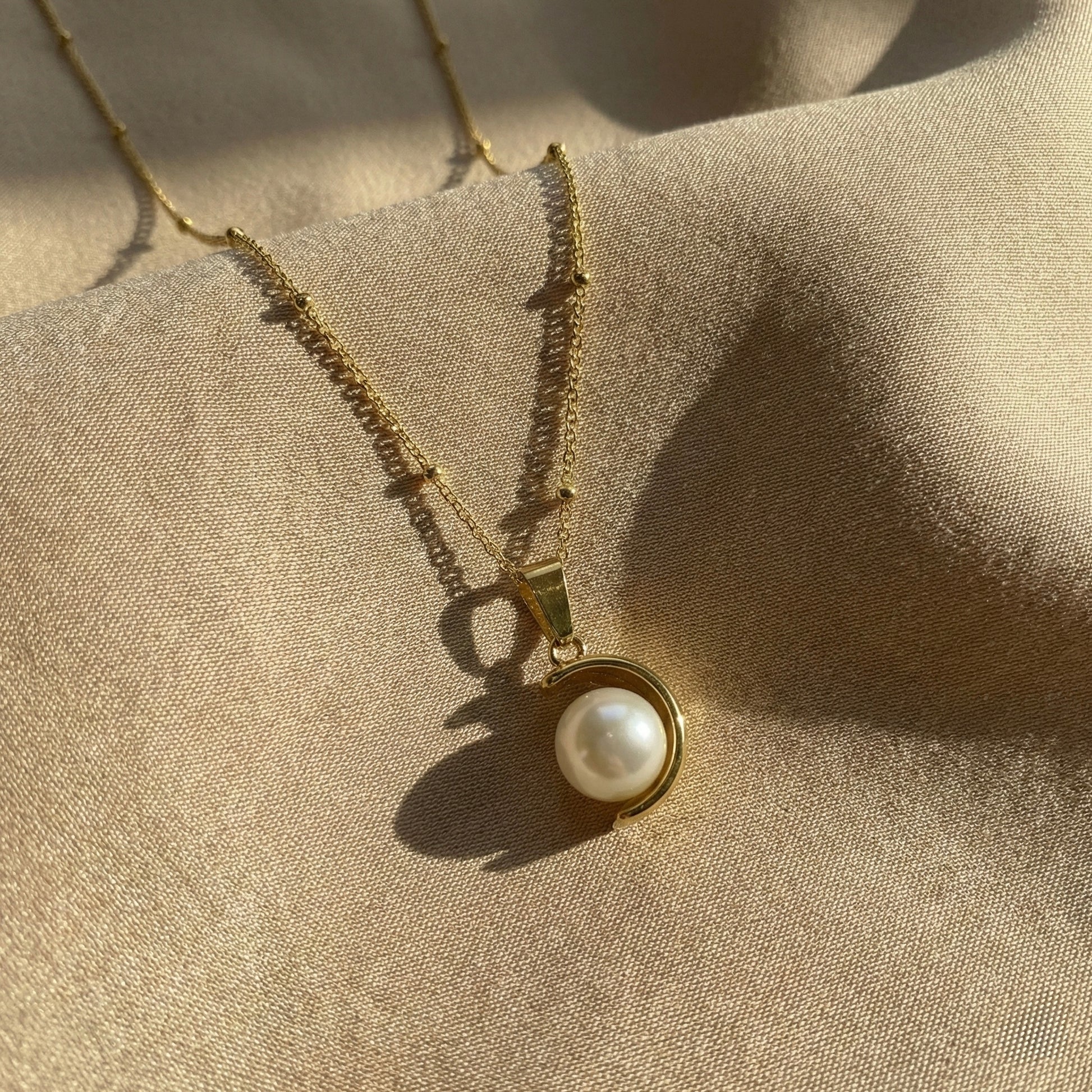 Pearl Moon Gold Plated Necklace – Minimal Pearl Jewellery | Myst Juels