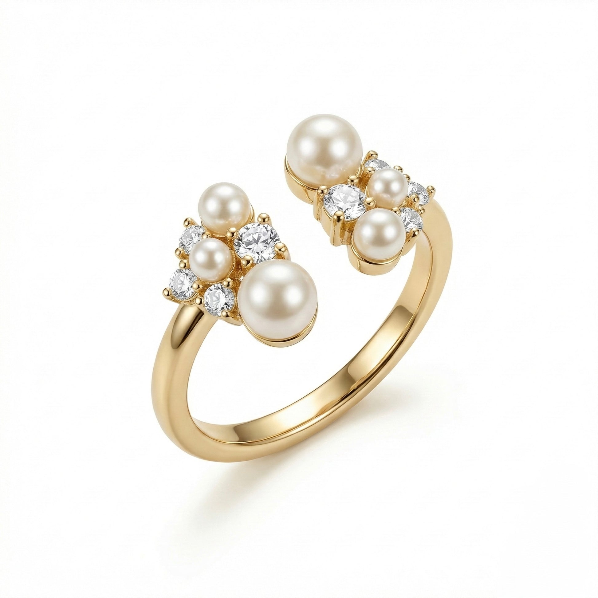 Seraphine Pearl Crown Ring – Gold PVD Pearl Cluster Adjustable Ring for Women