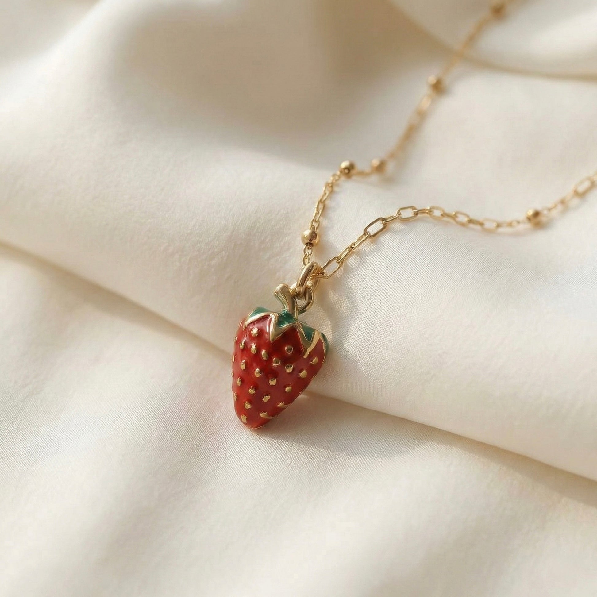 Sweet, playful and elegant — this strawberry charm gold plated necklace adds a fresh pop of color to your everyday look. Lightweight, glossy enamel finish with a delicate gold chain. Perfect for gifting and daily wear.